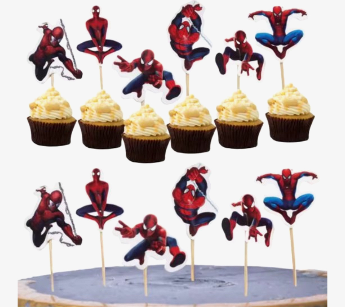 24 Stuks Spiderman Taart Decoraties Kids Jongen Gunst Party Cake Topper Versiert Baby Douche Superheld Cupcake Toppers Decor Supplies