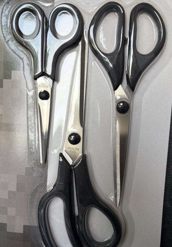 Deze handige schaar set van 3 stuks is een onmisbare aanvulling voor elk huishouden, kantoor of klaslokaal. De scharen zijn gemaakt van duurzaam roestvrij staal en hebben comfortabele handvatten van kunststof en rubber, waardoor ze prettig in de hand liggen.