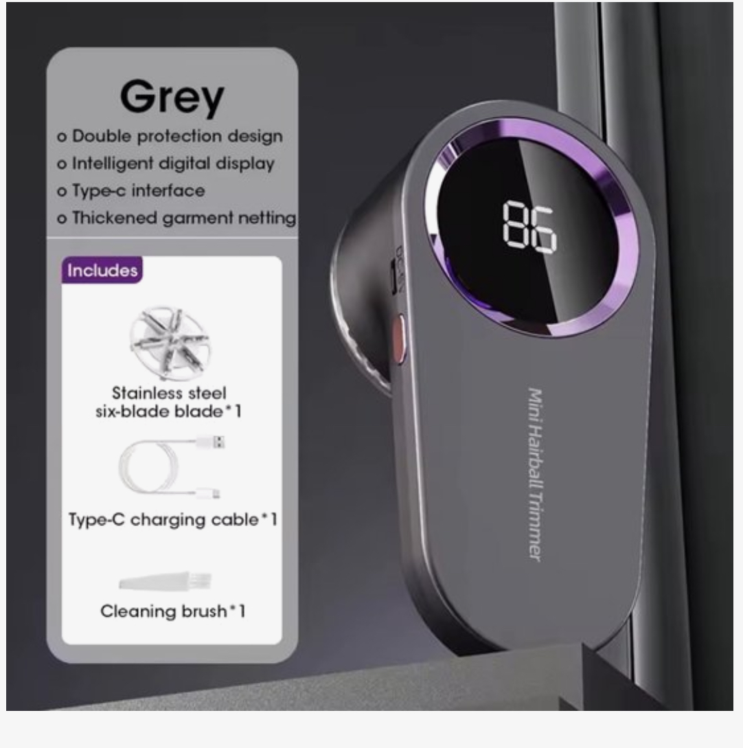 Geef je favoriete kledingstukken een tweede leven met deze digitale elektrische pluisverwijderaar. Dankzij het scherpe scheerblad en het LED-display weet je altijd hoe vol het reservoir is en wanneer het tijd is om op te laden. Het apparaat is geschikt voor verschillende stoffen zoals wol, katoen en synthetische materialen.